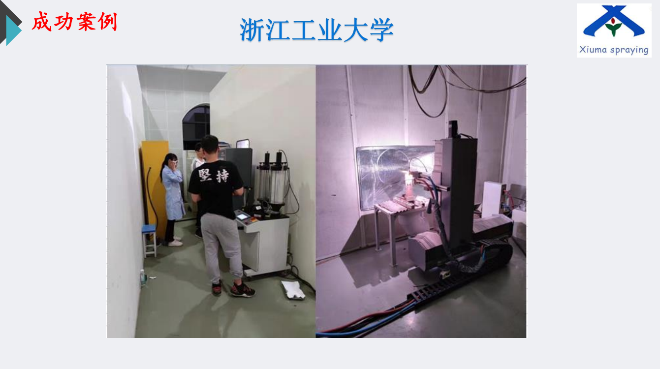 上海休玛喷涂机械有限公司是专业从事热喷涂加工与设备制造研发的企业,是国内少数几家能独立生产电弧喷涂设备、等离子喷涂设备和超音速喷涂设备的厂家之一。公司拥有一批技术人才专门致力于热喷涂设备,材料以及工艺等方面的开发与生产。吸收国外技术自主研发新型高能等离子喷涂设备与超音速喷涂设备以及电弧喷涂设备,在国内率先开发了触摸屏控制的等离子设备XM-80SK、XM-100SK、XM-120SK等离子喷涂设备、燃气超音速喷涂设备(XM-5000)、煤油超音速喷涂设备(XM-8800、XM-JP8000),目前已广泛运用于喷涂行业,涂层质量达到国外同类产品水平,受到国内外客户的一致好评。